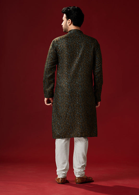 Dark Green Woven Embroidered Lehenga Choli In Dola Silk