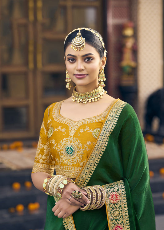 Dark Green Georgette Embroidered Lehenga Choli