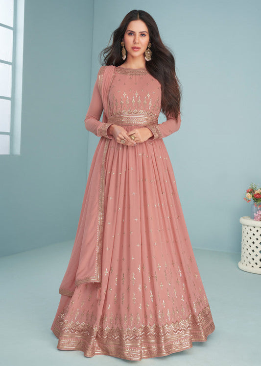 Pink Georgette Embroidered Anarkali Suit