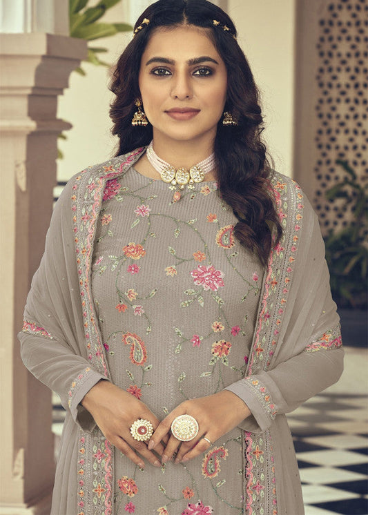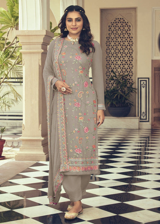 Grey Embroidered Straight Cut Salwar Kameez