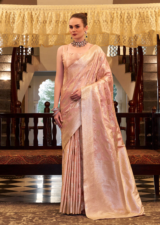 Pink Zari Woven Embroidered Silk Party Wear Saree