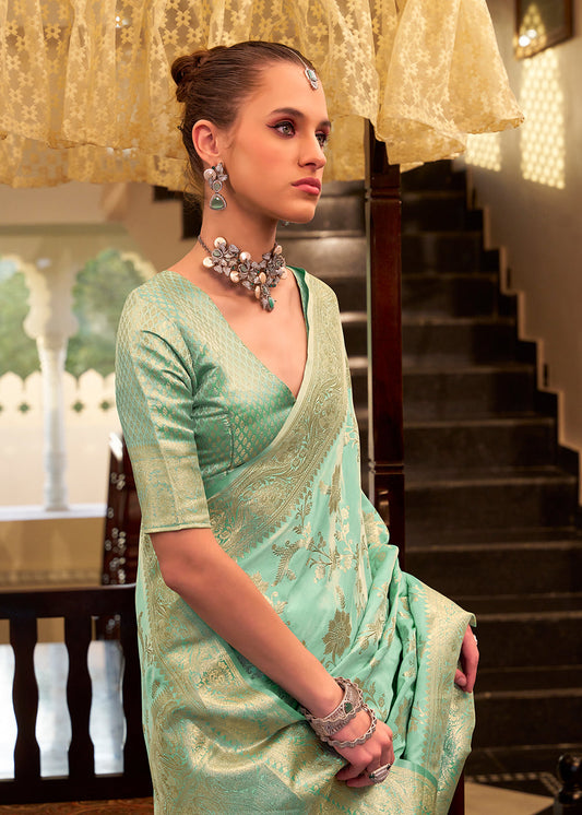 Olive Green Zari Embroidered Silk Saree With Blouse