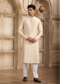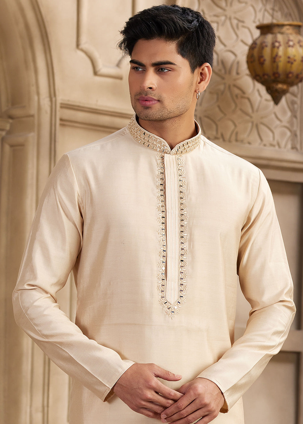 Beige Mirror Embroidered Kurta Pajama In Silk