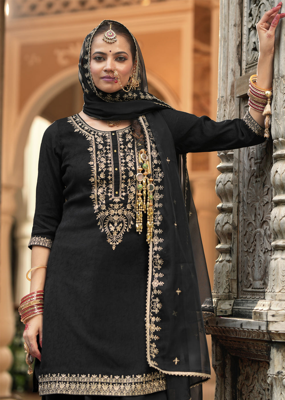 Color - Kameez: Black, Salwar: Black, Dupatta: Black