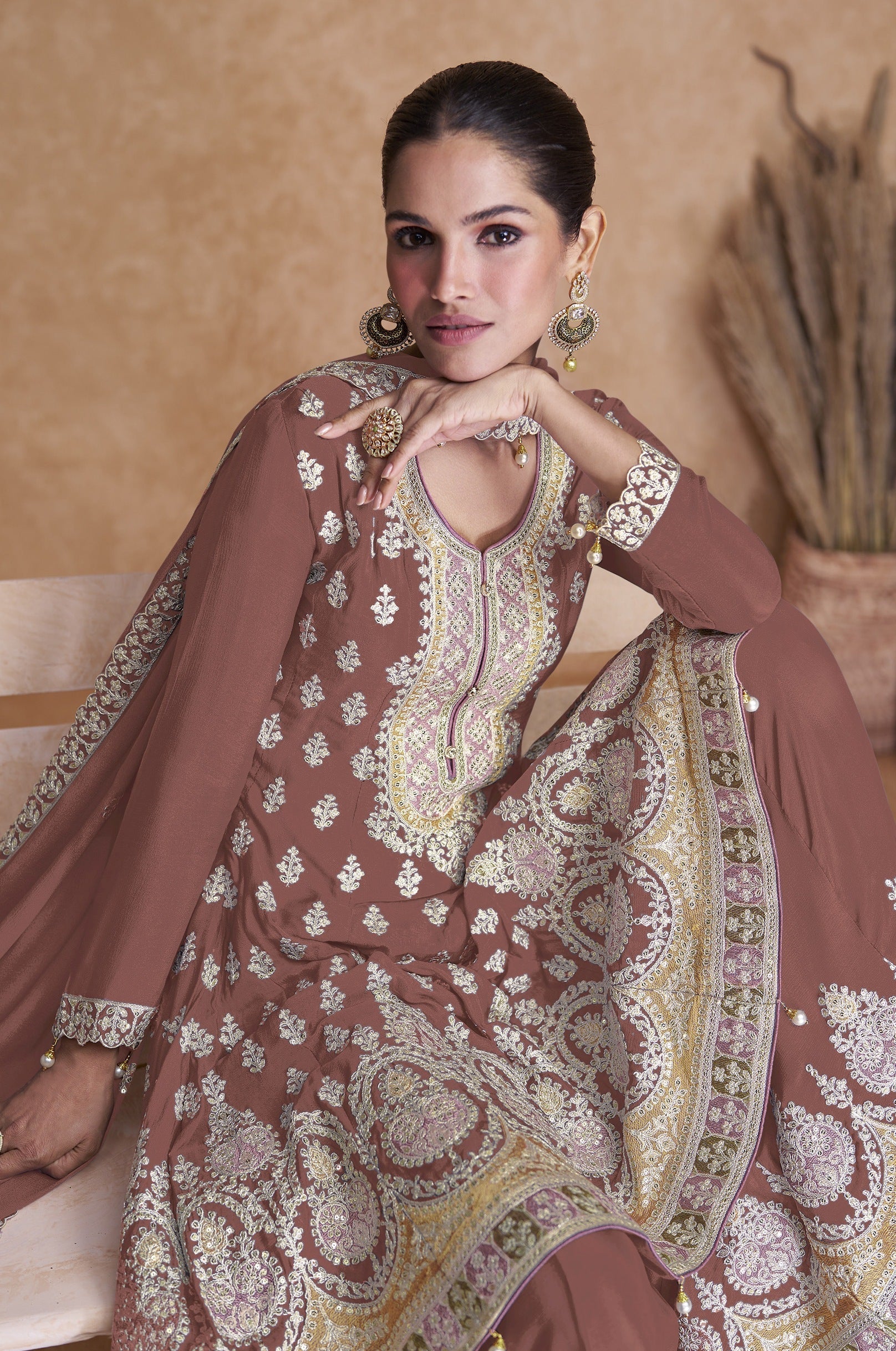 Color - Kameez: Brown, Salwar: Brown, Dupatta: Brown