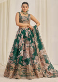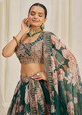 Dark Green Floral Printed Lehenga Choli