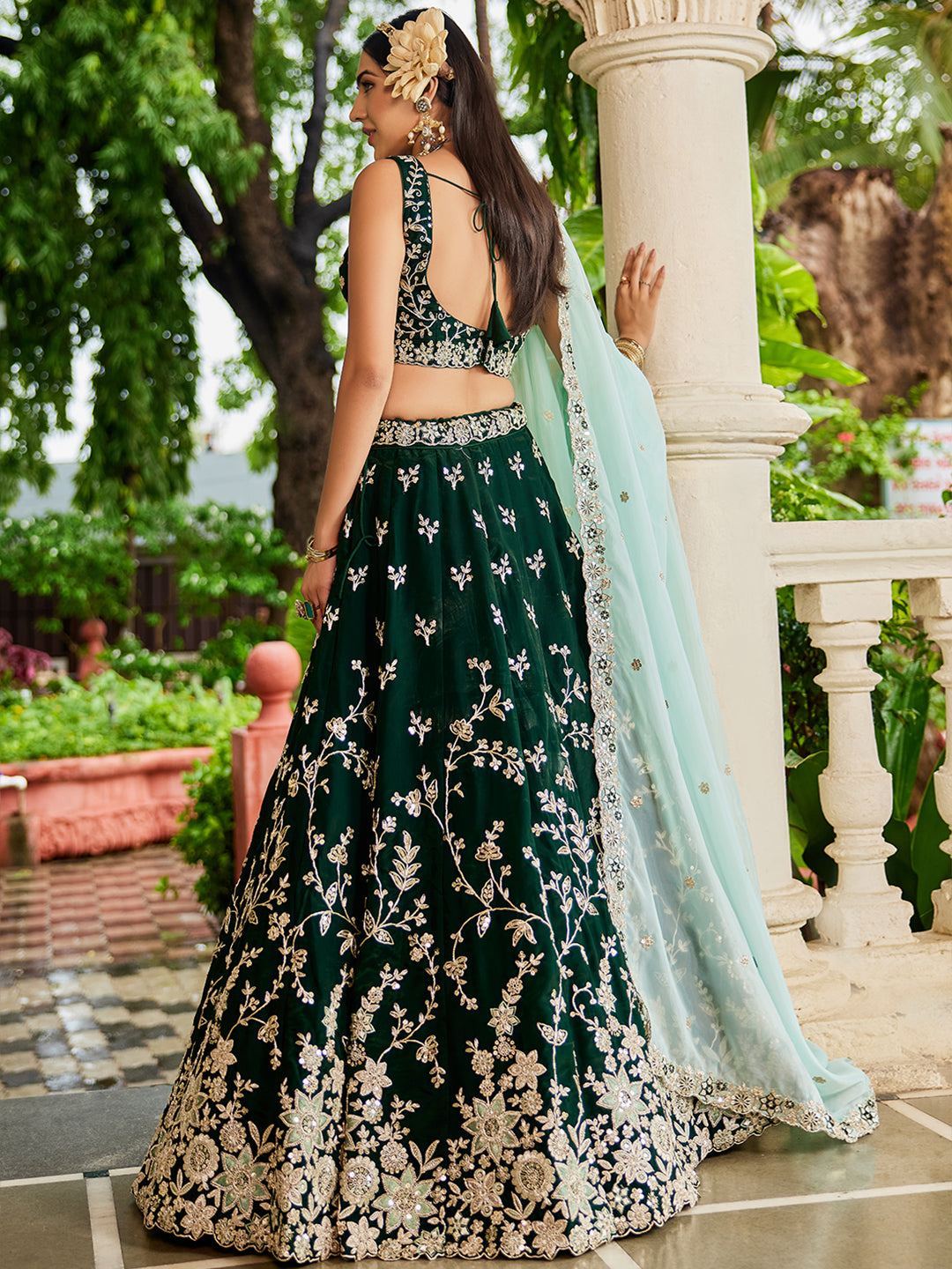 Color - Lehenga - Green, Choli - Green, Dupatta - Sea Green