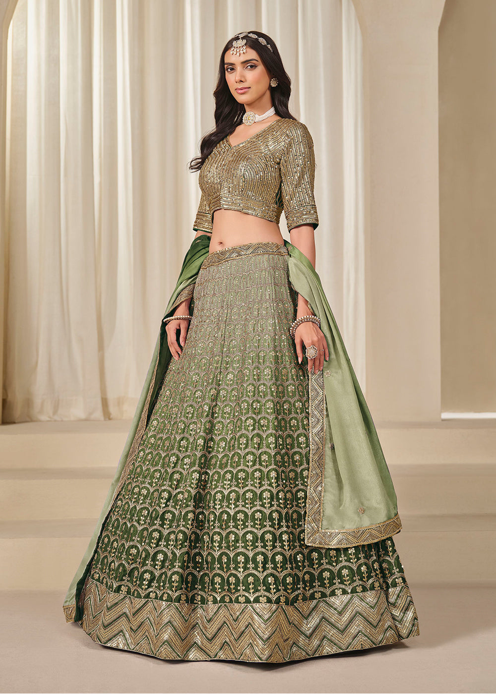 Green Silk Zari Sequin Embroidered Lehenga Choli