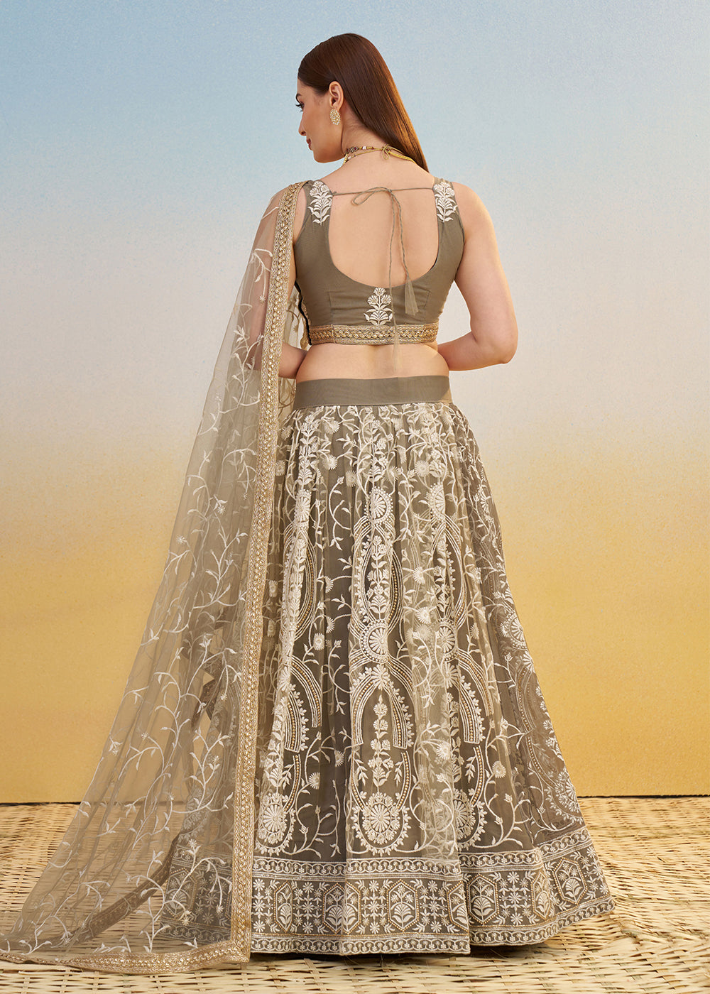 Color - Lehenga - Grey, Choli - Grey, Dupatta - Grey