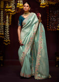 Light Blue Heavy Embroidered Banarasi Silk Saree