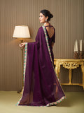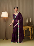 Magenta designer chiffon saree crafted in heavy embroidry work all over. Comes along with a matching color blouse in similar work . The un-stitched saree blouse may be customized up to 44 inches.