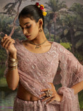 Mauve color lehenga in net decorated all over heavy thread and zari sequin embroidery and stone work all over. Comes along with a matching color choli and dupatta in similar work. The semi-stitched choli can be customized up to 42 inches. Do Note: All Accessories shown are for styling purpose only. Slight color variation may occur due to photographic reasons.