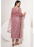 Pink Embroidered Pant Salwar Kameez In Net