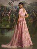 Pink color lehenga in net decorated all over heavy thread and zari sequin embroidery and stone work all over. Comes along with a matching color choli and dupatta in similar work. The semi-stitched choli can be customized up to 42 inches. Do Note: All Accessories shown are for styling purpose only. Slight color variation may occur due to photographic reasons.