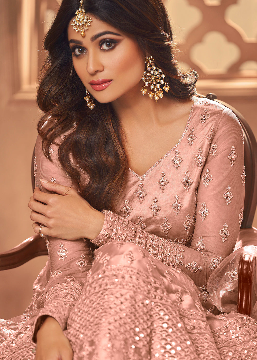Pink Sequin Embroidered Bridal Anarkali Suit