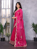 Pink Zari Sequin Embroidered Party Wear Saree