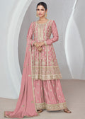 Pink Zari Work Sharara Suit In Georgette