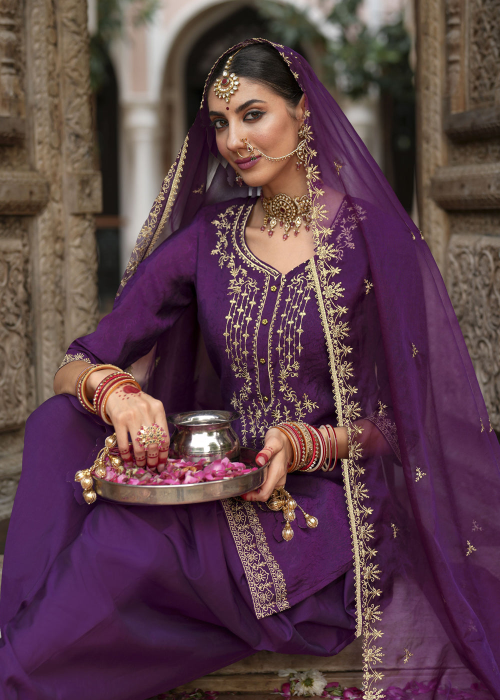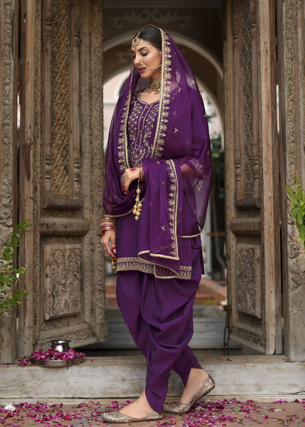 Color - Kameez: Purple, Salwar: Purple, Dupatta: Purple