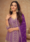 Color - Kameez: Purple, Salwar: Purple, Dupatta: Purple