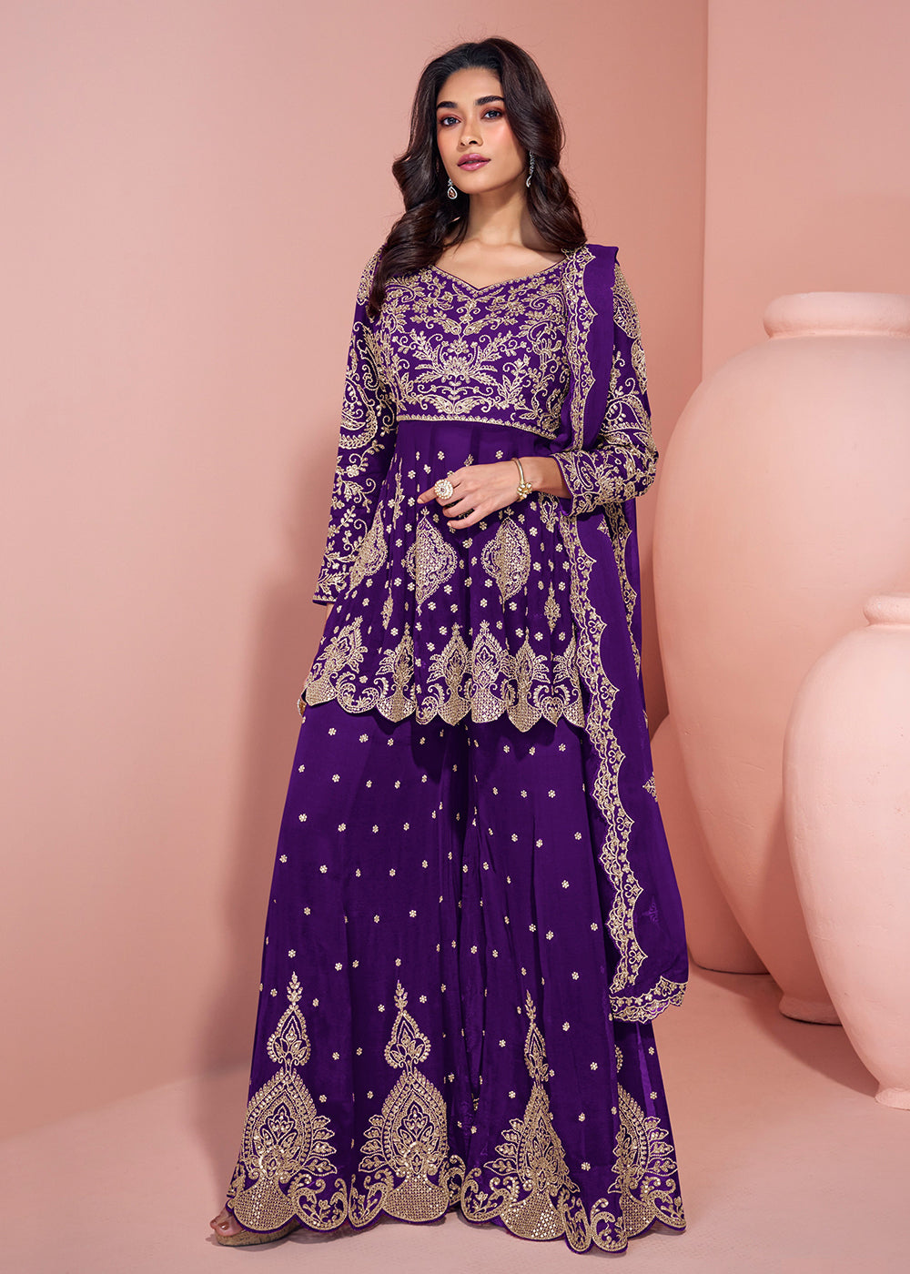 Purple Zari Embroidered Georgette Sharara Suit