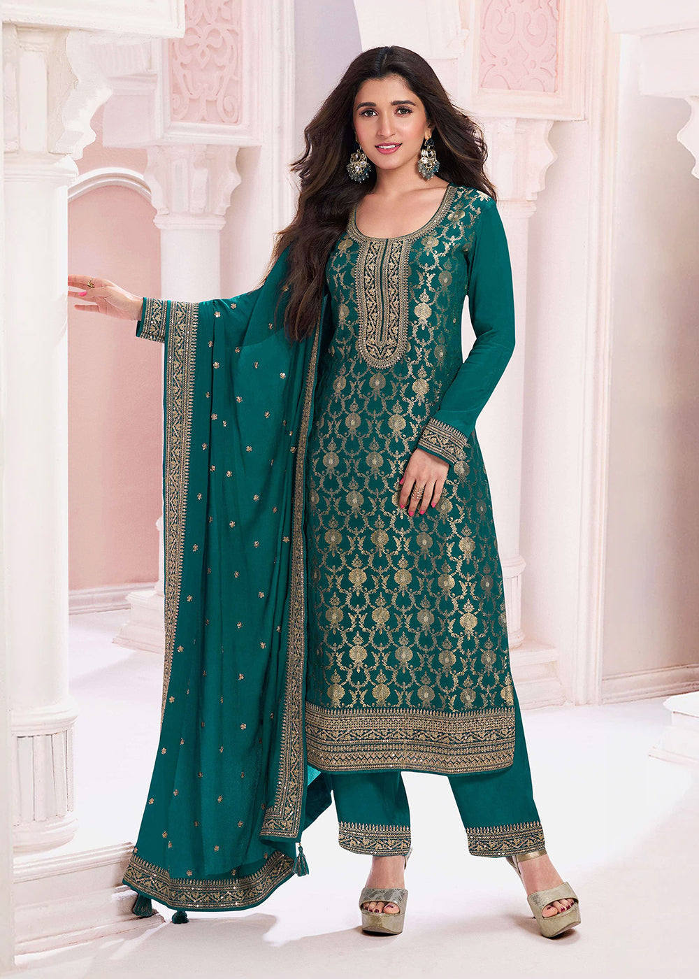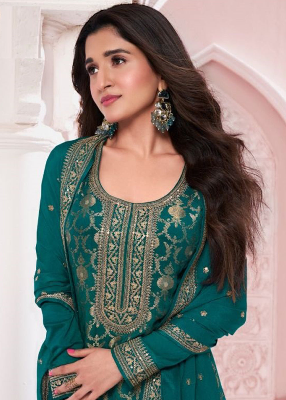 Rama Green Woven Embroidered Palazzo Salwar kameez