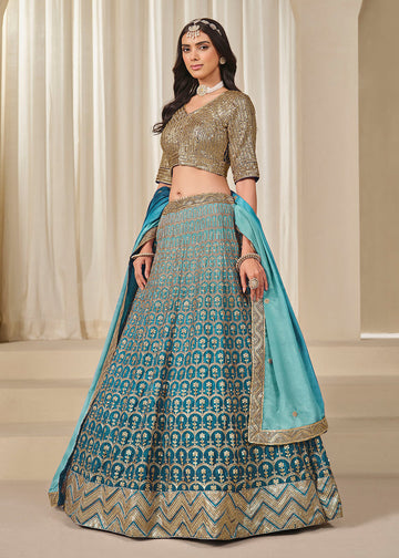 Green color lehenga in silk decorated all over heavy zari & thread embroidery and sequin and stone work all over. Comes along with a matching color choli and dupatta in similar work. The semi-stitched choli can be customized up to 44 inches. Do Note: All Accessories shown are for styling purpose only. Slight color variation may occur due to photographic reasons.