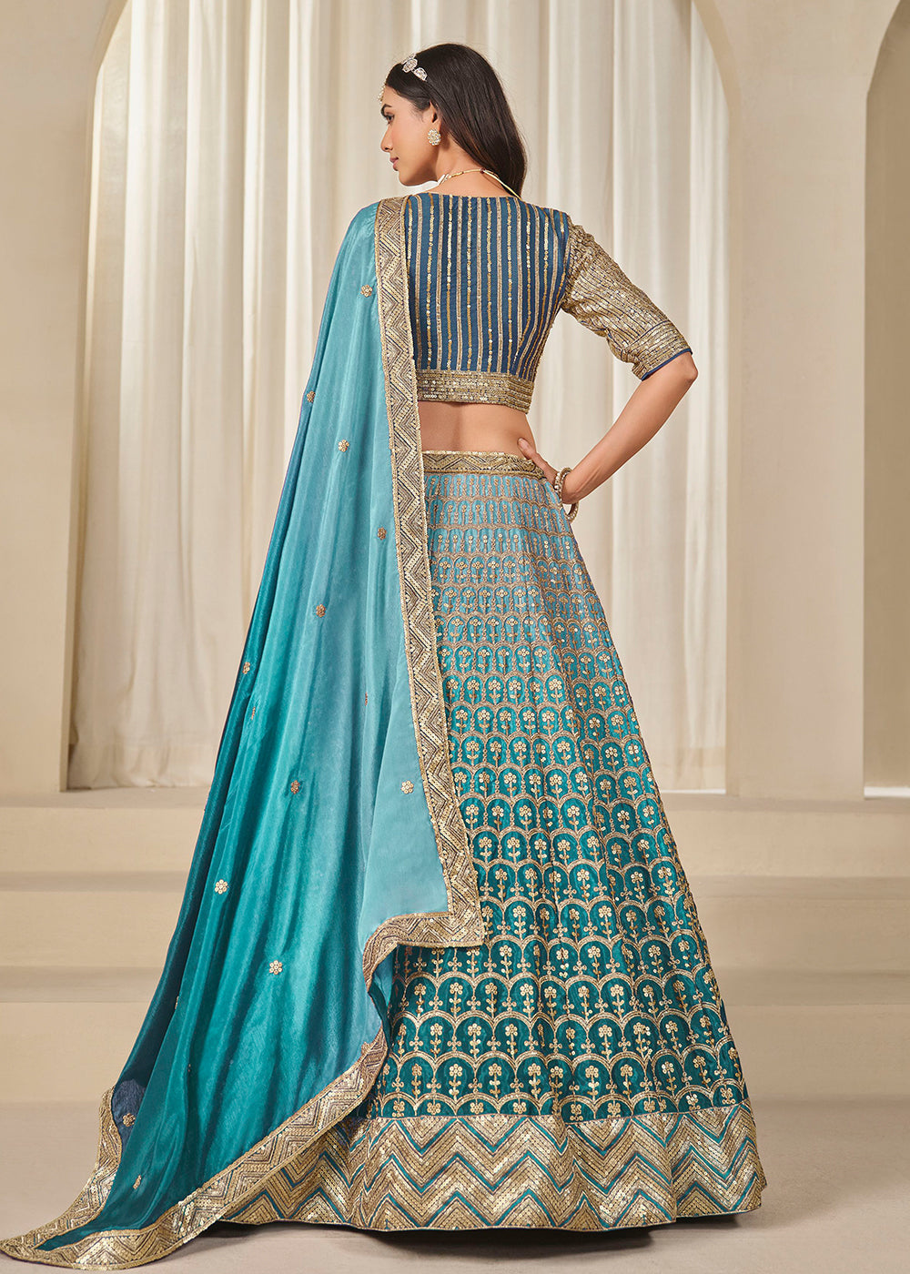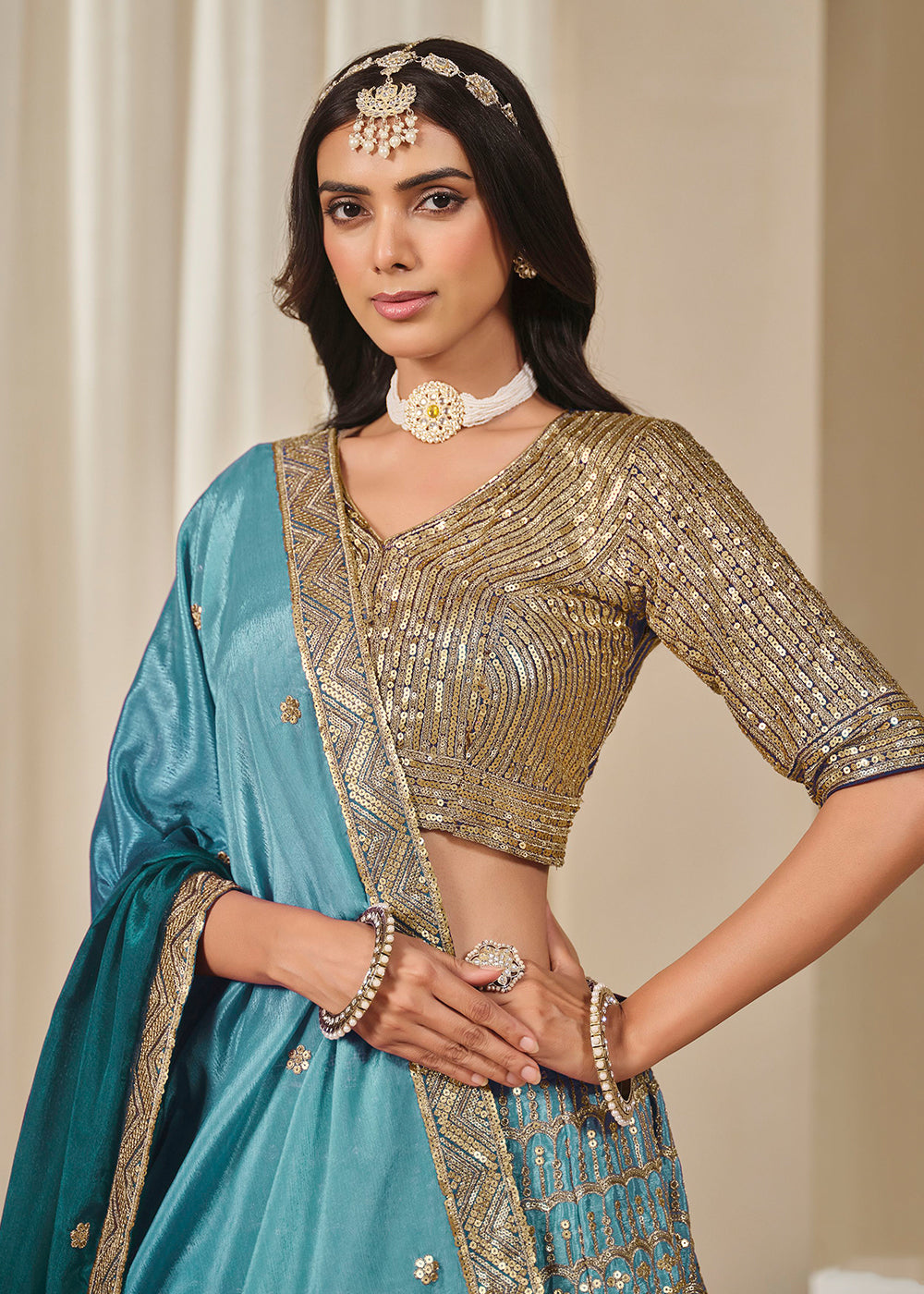 Sky Blue Silk Zari Sequin Embroidered Lehenga Choli