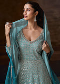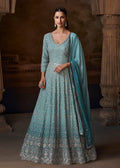 Sky Blue Thread Embroidered Anarkali Salwar Suit