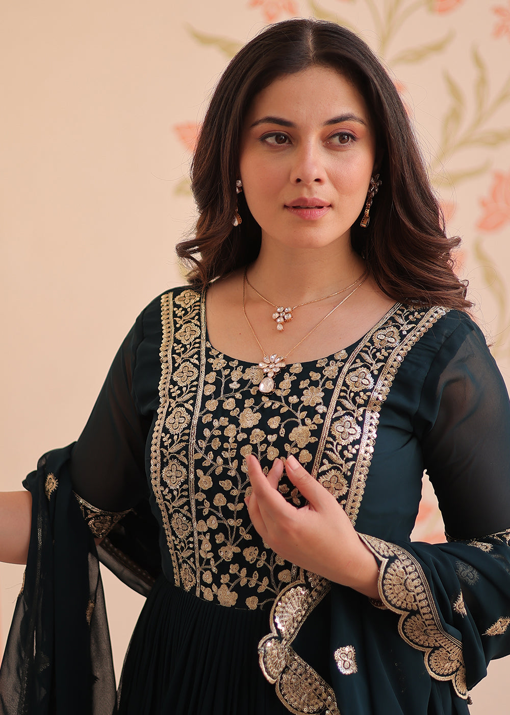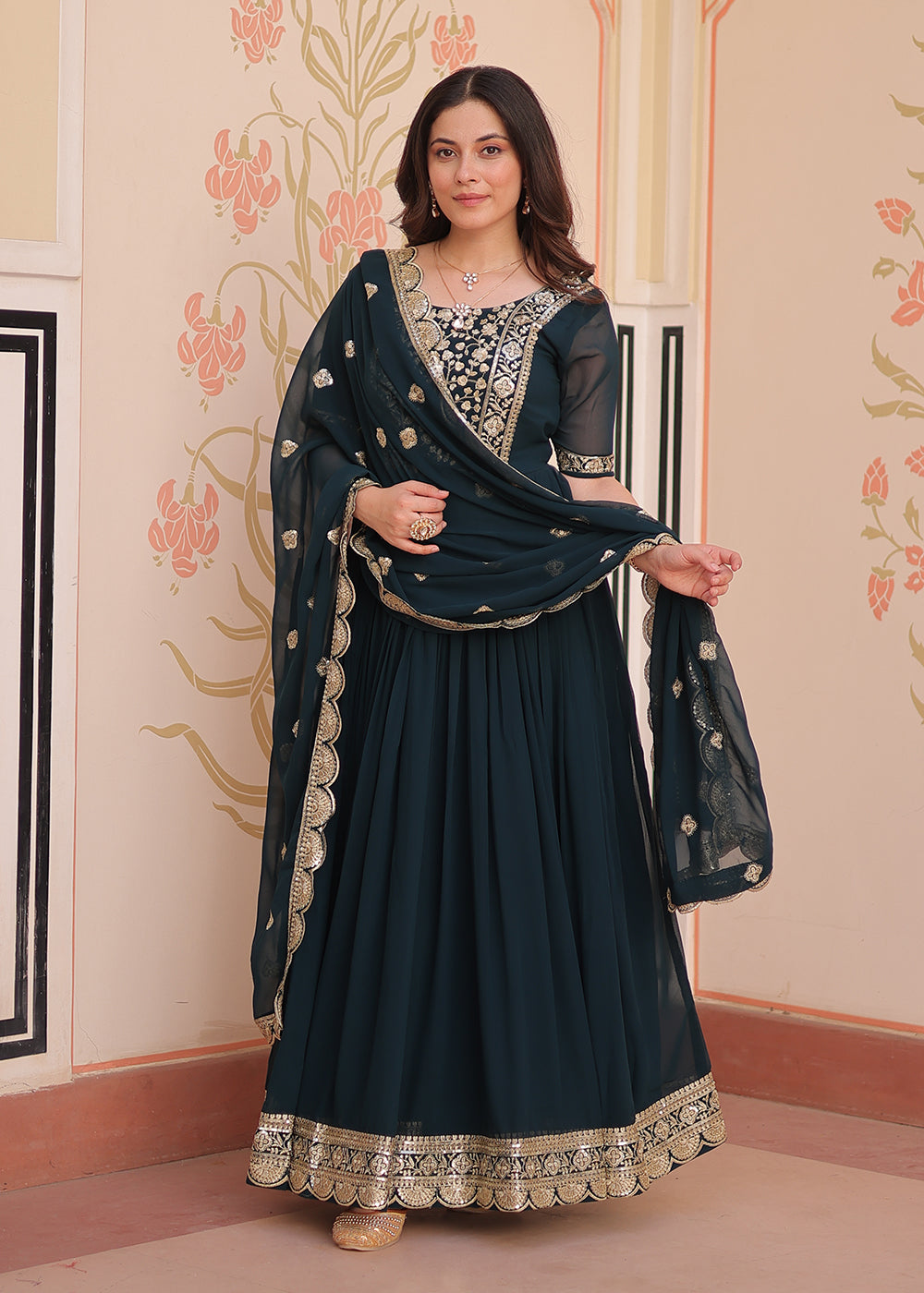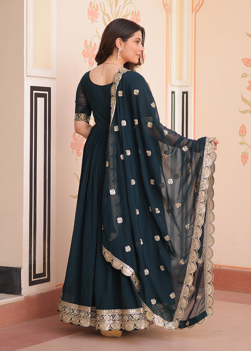 Teal Blue Sequin Embroidered Georgette Anarkali Suit