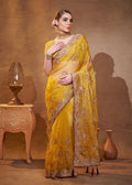 Yellow Tissue Silk Embroidered Stone Work Saree